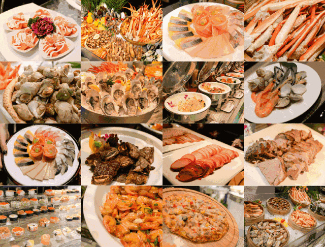 丰盛的海鲜自助晚餐、东南亚风情美食、