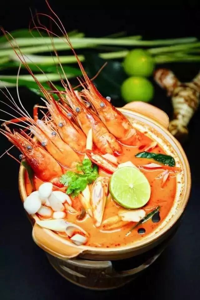 典型名菜有班兰叶鸡块、泰国冬阴功汤