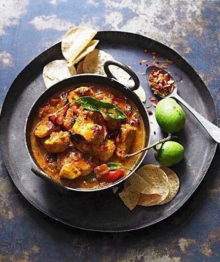 印度咖喱鸡经过咖喱粉、豆蔻粉等香料的亲吻,鸡肉就有了独特的浓郁香味。撕一块外酥里嫩的抛饼,沾一点番茄勾出的汤汁,灵魂好像去了印度旅行。
